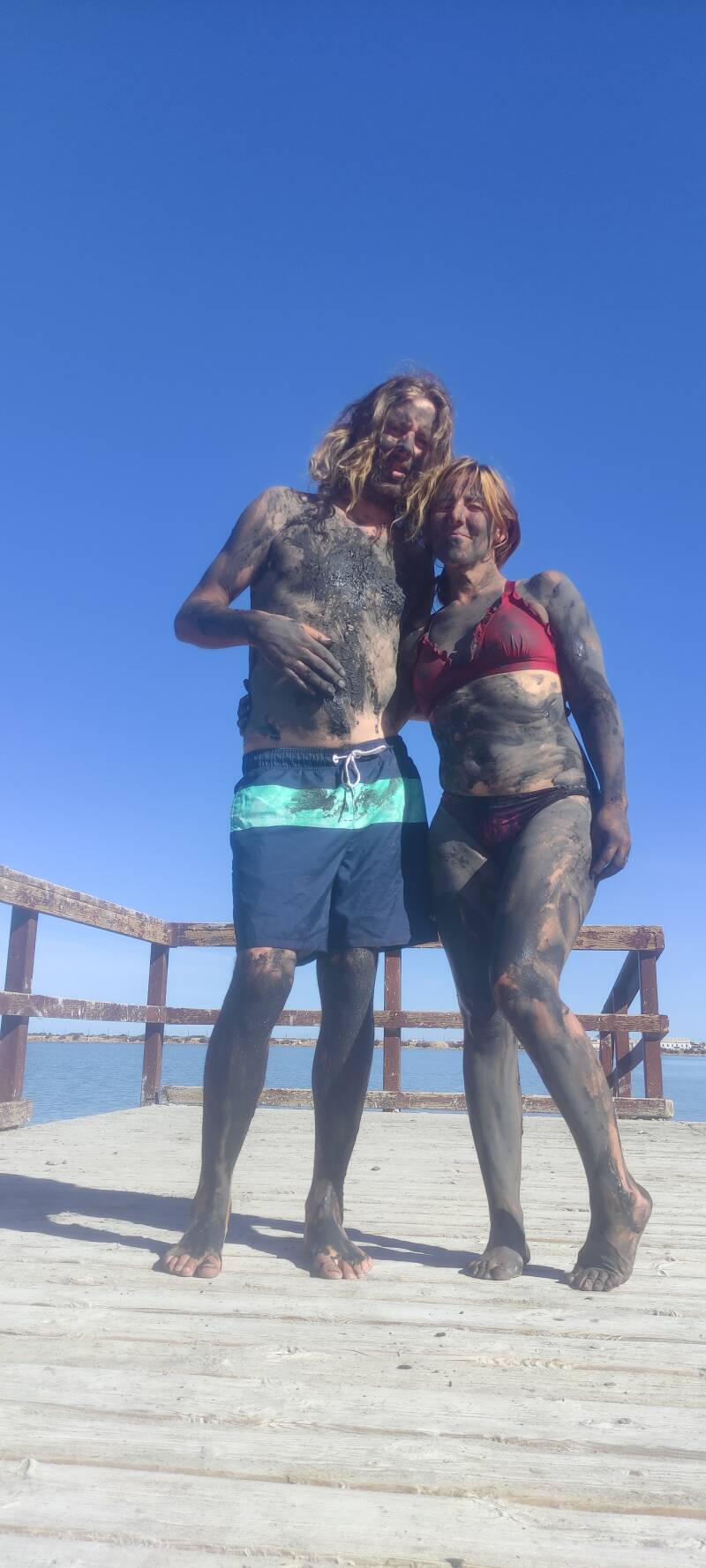 Dag 2 een helend modderbad met klei,.sulfaten, zwavel en nog andere vieze dingen... heerlijk dus! (Banos de lodo) aan de Salinas